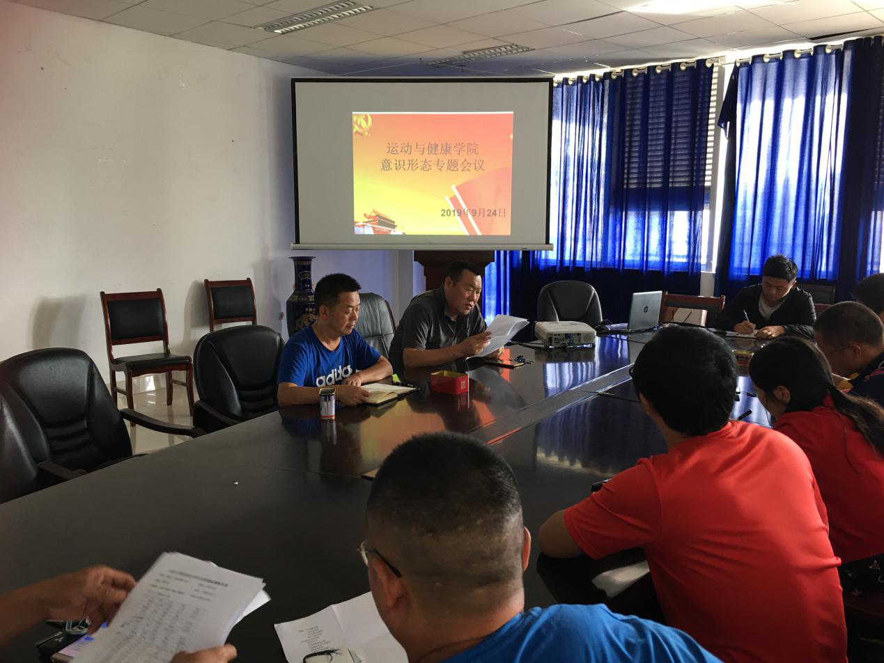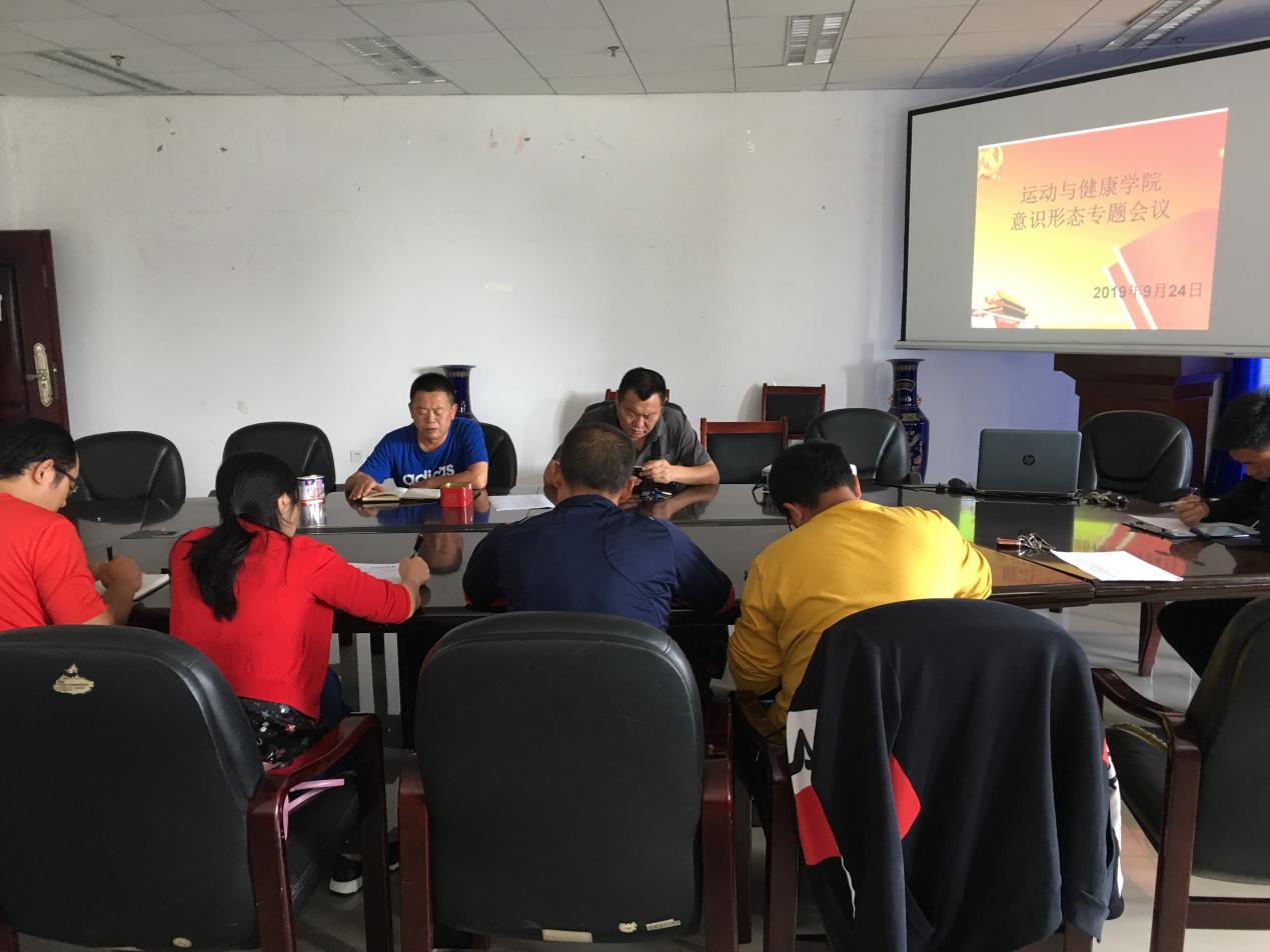 9月24日上午9:00,js3333线路检测中心在体育馆三楼会议室召开意识形态专项工作会议,会议由党委书记姚思勤主持,js3333线路检测中心党政领导、副科级以上干部、教研室负责人及全体辅导员参加。