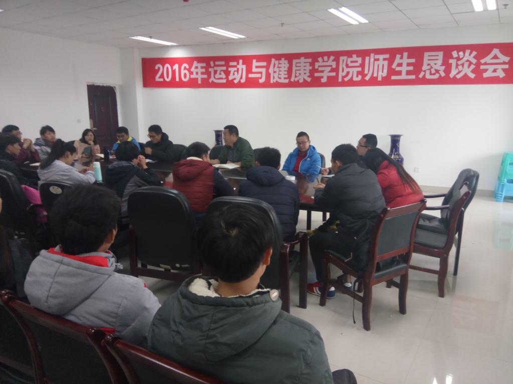 2016年12月14日,公司在体育馆三楼召开了2016js3333线路检测中心社会体育指导与管理(职教方向)的师生恳谈会,出席此次会议的有经理国伟,副经理陈庆以及学院各教研室主任和各级辅导员,同时参加会议的有13级、14级、15级、16级的各班代表们。