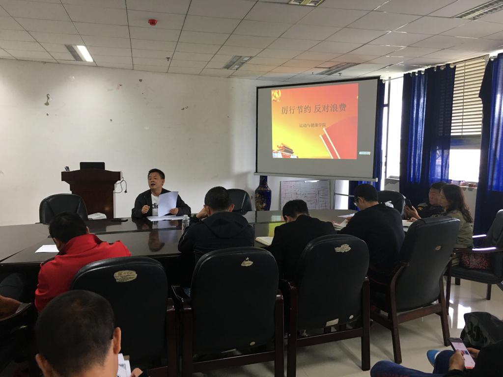 会上,姚思勤首先带领全体教师学习了关于习近平总书记厉行节约反对浪费的重要批示,从批示的背景、重要意义等方面向全体教师进行了说明,同时学习了贵州省委办公厅 省政府办公厅印发 《关于厉行节约坚决制止餐饮浪费行为的通知》,姚思勤结合习近平总书记的指示、省委办公厅省政府办公厅下发的通知以及学校关于厉行节约反对浪费工作的安排,对教职工关于厉行节约反对浪费工作的开展提出了要求,一是全体教师要深入学习和领会习总书记关于厉行节约反对浪费的重要批示内容;二是以身作则、率先垂范,从实际行动上为员工树立良好的榜样;三是向家人、身边的朋友等宣传厉行节约反对浪费的重要思想。四是要通过灵活多样的方式在员工中宣传提倡厉行节约反对浪费的行为,如主题班会、签名活动、微信、微博推送关于勤俭节约的相关故事和文章,让厉行节约的思想扎根员工的内心深处,并且体现在实际的行动中。