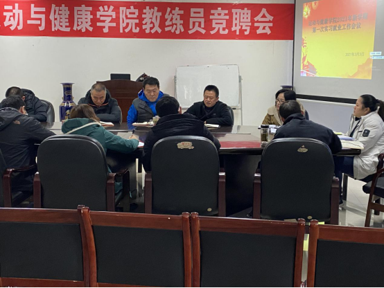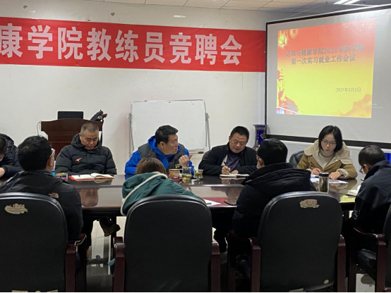 3月3日上午10:00,学院于体育馆三楼会议室召开了新学期第一次实习就业工作会议,学院处级领导干部、专业教研室负责人、基地办公室主任、场馆中心主任、综合办公室、教学科研管理科、员工科全体成员参加此次会议,会议由经理国伟主持。