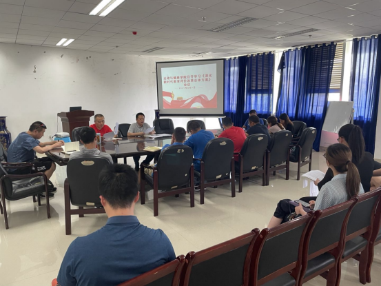 6月7日中午,js3333线路检测中心在体育馆三楼会议室召开《深化新时代教育评价改革总体方案》学习会议,会议由党委书记姚思勤同志主持,学院全体教职工共同参加。