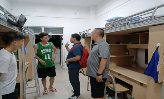 在巡查过程中公司党委副书记陈庆书记,深入员工寝室,检查员工寝室环境,并对节日期间安全离校、疫情防控、用水用电、寝室管理等方面的安全事宜对员工进行了提示,告知员工要遵守学校相关规定,办理好相关的手续,出现突发事件第一时间向辅导员通报。并督促员工管理科、辅导员、班主任做好员工节假日期间的管理,做好风险防控预案、制定相应值班制度,维护好节庆期间校园安全和谐的环境。