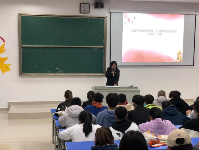 11月10日晚,js3333线路检测中心副经理周利以“弘扬伟大建党精神,引领青年成长成才”为题,为联系班级上了思想政治课。