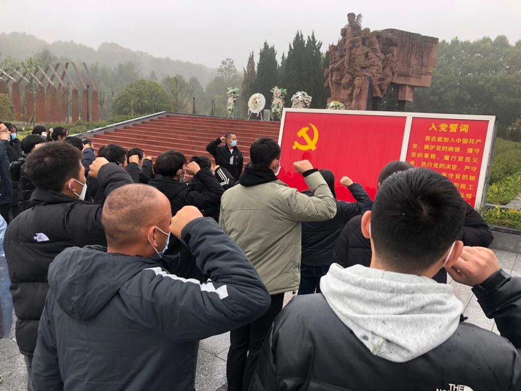 参观到学习的最后阶段,研究生党支部在息烽集中营革命纪念馆的广场上重温入党誓词。在革命烈士的雕像前,在鲜红的党旗下,全体党员佩戴党徽,举起右拳,紧握拳头,庄严宣誓。重温入党誓词,能够让广大党员严格要求自己,永葆党员本色,坚定理想信念,牢记初心使命。