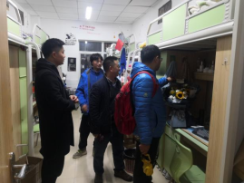 走访检查过程中,姚思勤书记提出,同学们一定要注意宿舍用电用水安全,保管好贵重物品,统一做好户外装备的集中管理,消除安全隐患,营造温馨舒适的寝室环境,提醒毕业生同学做好迎接论文撰写和就业的准备。