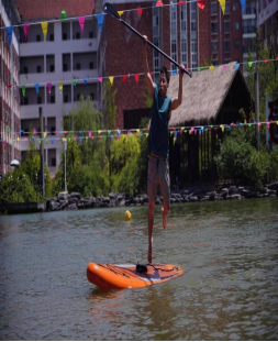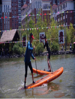 桨板绕圈:第一名冉东11个/分钟;第二名班扬仕、龙团远、陈才富、吴昌荣10个/分钟;石珍珠(女)、黄万荣获第三名。