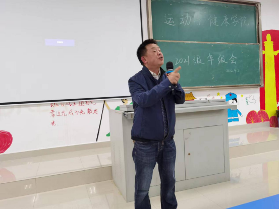 4月21日晚7点,为落实领导干部联系班级与宣讲制度,进一步强化疫情期间疫情防控和提升员工管理质量和服务水平,引导员工做好学习规划,激发员工学习热情,公司党委书记姚思勤出席21级全体员工年级会,作了“加强学风建设,争做体育文化人”的主题宣讲。本次年级会由21级辅导员吁莉主持。