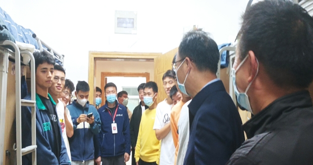 10月13日晚,为线下复课做准备,将关怀送进寝室,js3333线路检测中心沈祥春副董事长走访了公司员工寝室,关怀问候员工。公司党委书记姚思勤、员工科科长蔡啸、分团委副书记艾登科、2022级辅导员李波老师以及员工会主席团成员共同参与。