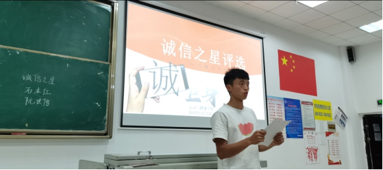 本次评选活动由文艺部邓彬主持,在通过简洁明了的规则介绍后,评选活动在热烈的掌声中正式拉开帷幕。竞选人依次有序上台演讲,并向同学们生动形象的介绍自己在大学以来的励志经历以及诚信经验等。在所有竞选人演讲完毕之后,现场扫码投票的方式来进行投票,最终评选出的励志之星为19级的邰政文,诚信之星为21级的阮世信。